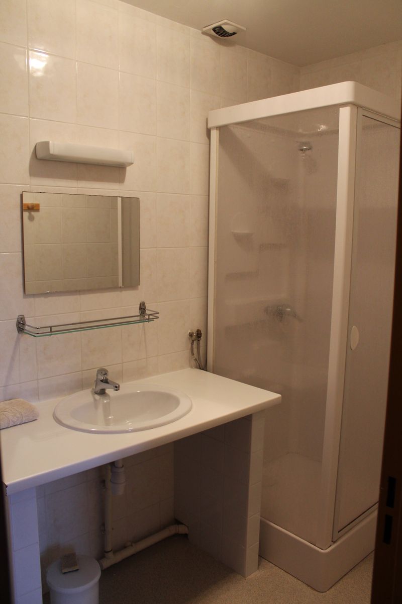 Une chambre de 4 personnes avec un lit double et 2 lits superposés dans une chambre attenante, avec salle de bain et WC privatifs.